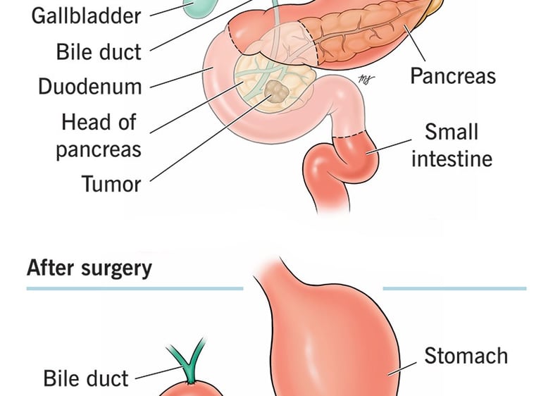 A complex surgery to remove tumors in the head of the pancreas, bile duct, or duodenum. It involves removing part of the pancreas, bile duct, gallbladder, and duodenum, followed by reconstruction.
