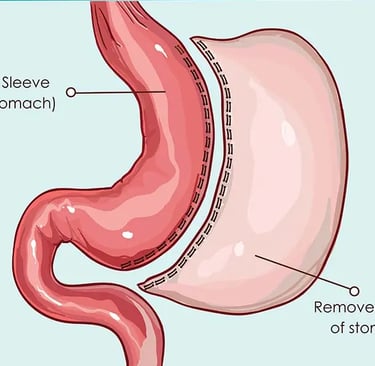 Sleeve gastrectomy is a surgical weight-loss procedure that involves removing about 80% of the stomach, leaving a tube-shaped stomach about the size and shape of a banana. Sleeve gastrectomy is sometimes called a vertical sleeve gastrectomy. This procedure is typically performed laparoscopically, which involves placing small instruments through multiple small cuts in the upper part of the belly.