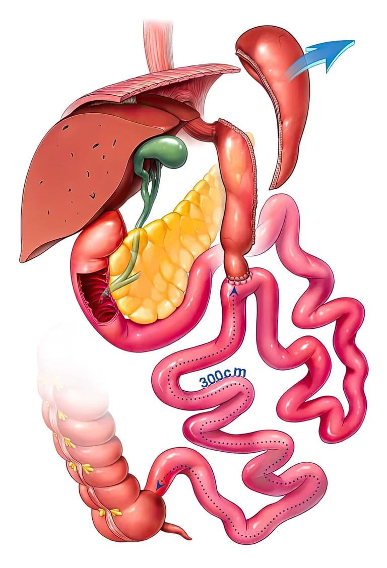 Duodeno-Ileal Bypass: The duodenum is directly connected to the lower part of the small intestine (ileum), allowing food to bypass a portion of the digestive tract, reducing calorie and nutrient absorption.