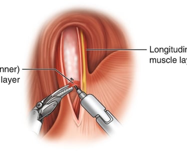 La acalasia esofágica es un trastorno poco común de la motilidad esofágica, caracterizado por la falta de relajación del esfínter esofágico inferior (EEI) y la ausencia de peristalsis progresiva en el esófago distal. Existen diversas opciones de tratamiento para aliviar la obstrucción del flujo de salida y mejorar los síntomas con la miotomía de Heller. Esta consiste en cortar las fibras musculares del esfínter esofágico inferior.
